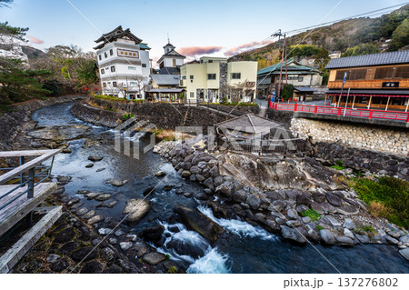 修善寺夜明け 桂川ととっこの湯 パノラマ【静岡県伊豆市】