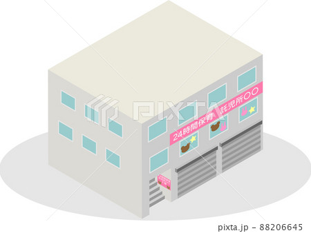 アイソメトリックな24時間保育を行っている託児所の建物