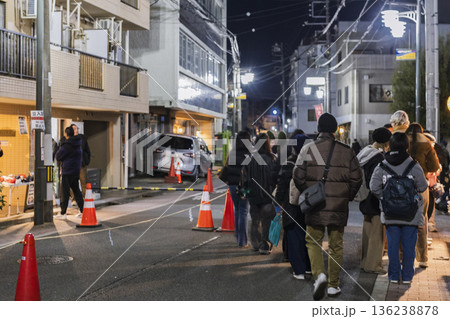 正月の初詣 行列する参拝客 夜の参道と群衆