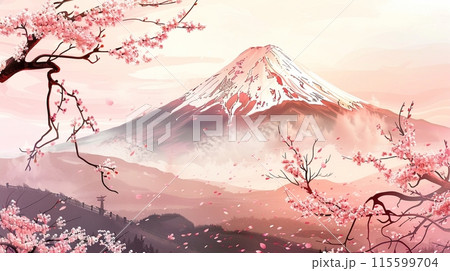 春の桜と舞い散る花びら|ピンクの柔らかな自然風景|和風イラスト