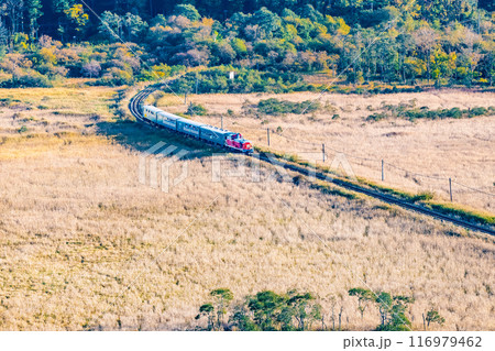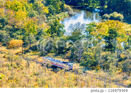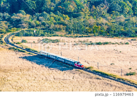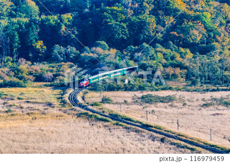 北海道 釧網本線 初秋の釧路湿原を行くノロッコ号 ~夢ヶ丘展望台から~