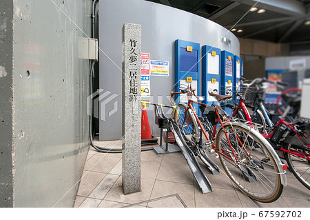 パステル調 ”駐輪場に止められた自転車” イラストイメージ