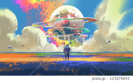 Explorer Witnesses a Vibrant Planet in Fantasy Landscape