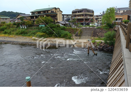 宇治川の中州 橘島から眺める朝霧橋、宇治神社方面の景色(京都府宇治市)