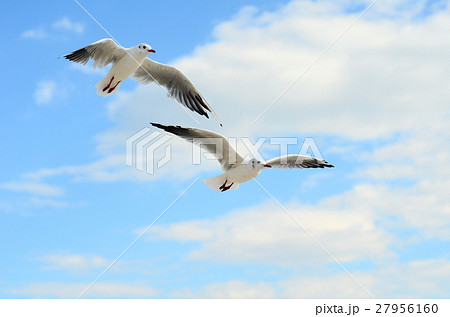 Two Seagulls in the blue sky.