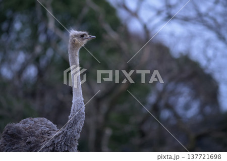 天気が変わるのかなと西の空を眺めるダチョウ
