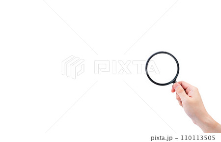 虫メガネを持つ手_虫眼鏡_ルーペ_調べる_検索_調査|白背景