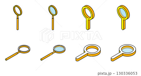 ルーペ アイソメトリック 虫眼鏡 ベクター セット シンプル 黄色