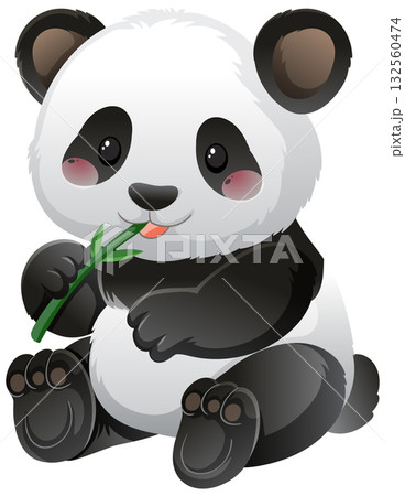 Cute Cartoon Panda Eating Bamboo Vector Illustration