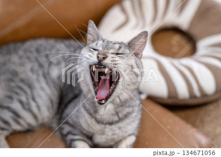 あくびをする猫 サバトラ猫