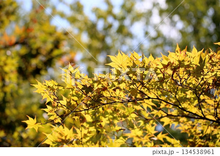 輝 金色 カエデの葉
