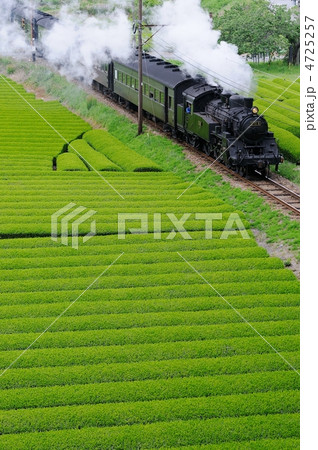 茶畑と蒸気機関車