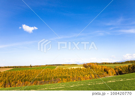 爽やかな青空と北海道美瑛町の秋