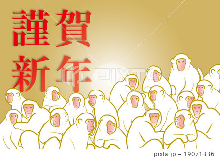 年賀状猿群れ白