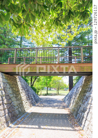 新緑に包まれた野添北公園にある橋(兵庫県加古川)