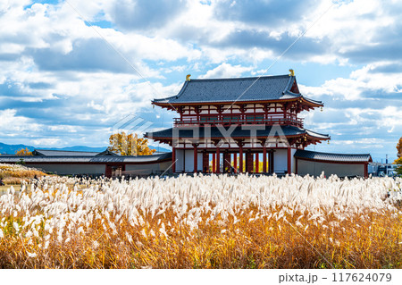 【奈良県】輝くススキが綺麗な平城宮の朱雀門