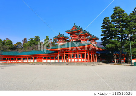 【京都府】快晴下の平安神宮 外拝殿と蒼龍楼