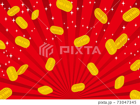 水彩風の小判が舞う背景イラスト 金運アップ・商売繁盛の素材