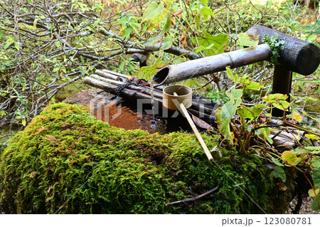 京都市大原 宝泉院庭園の苔むしたつくばい