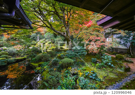 秋の京都大原 三千院 円融房梨菊紋とモミジ