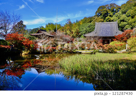 奈良、長岳寺の本堂と放生池