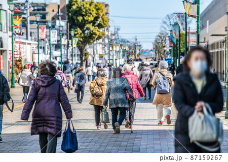 日本の大和市都市景観 コロナ禍の大和駅前シリウス広場。多くの高齢者で溢れている=2月21日