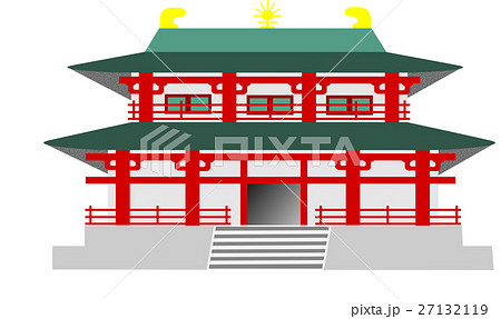 水彩画風 法隆寺 五重塔 奈良県生駒郡斑鳩町