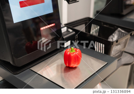 Bell peppers at the self-checkout.