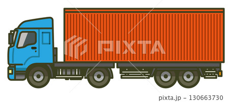 真横の青いトレーラー(コンテナを牽引している状態)のイラスト