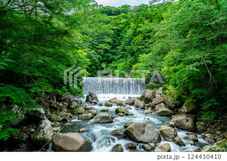 湯吹きの滝上流 湯檜曽川 真夏の風景 みなかみ町