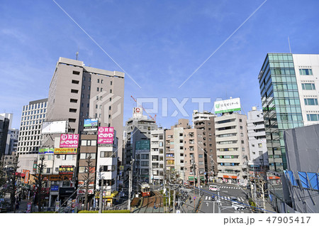 日本の東京都市景観 大塚駅前の都電などを望む