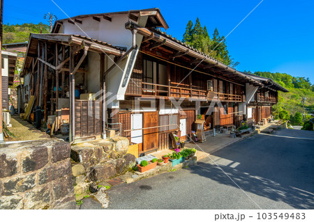 長野県木曽郡 南木曽町 大妻籠 中山道の宿場町 藤原家住宅(長野県宝)入り口からの光景