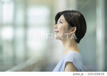 笑顔の若い女性 横顔
