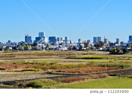 見沼側の芝川の土手から撮った大宮駅周辺の高層ビル群