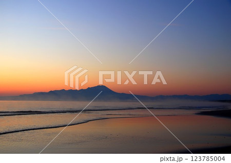 丹沢・塔ノ岳山頂から見る黎明の富士山