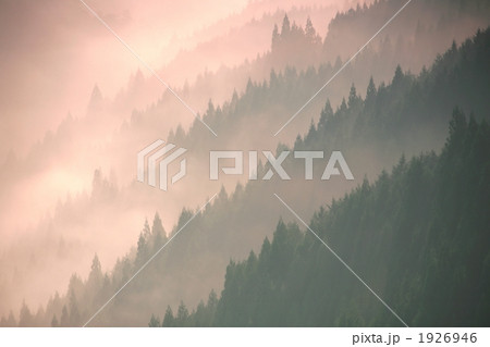 雲湧く新緑の山並み(奈良県吉野郡黒滝村)