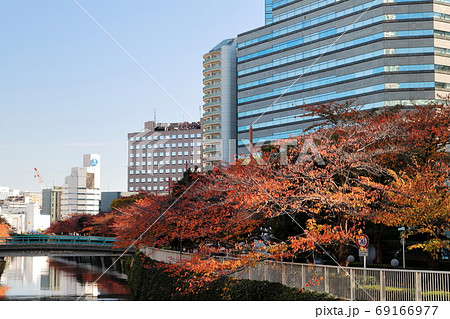 紅葉と街並み 東京都大崎駅東口周辺 目黒川