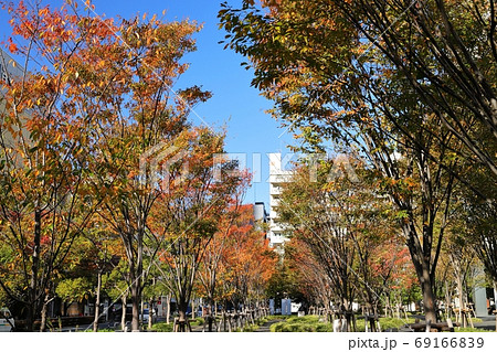紅葉と街並み 東京都大崎駅東口周辺 縦位置