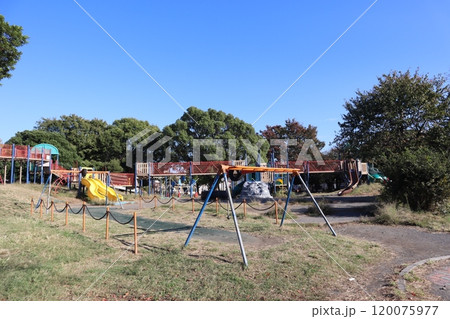 公園の風景 豊かな緑と広大な芝生の広場 大師公園 神奈川県川崎市