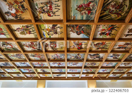 東京都台東区 矢先稲荷神社 拝殿内格子天井 日本馬乗史100枚の天井絵が奉納されている神社