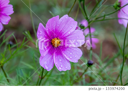 雨粒に濡れる桃色コスモス【秋桜】