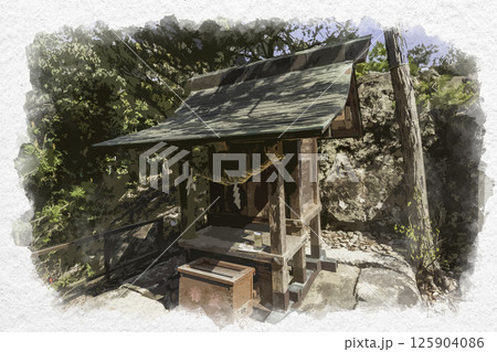 水彩画風 石上布都魂神社 本宮 岡山県赤磐市