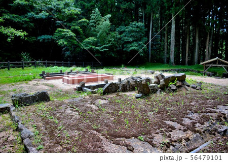 山口・萩・大板山たたら製鉄遺跡・製鉄炉の跡を展望台のスロープから見下ろす(1)