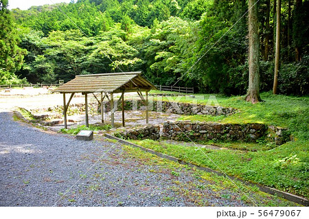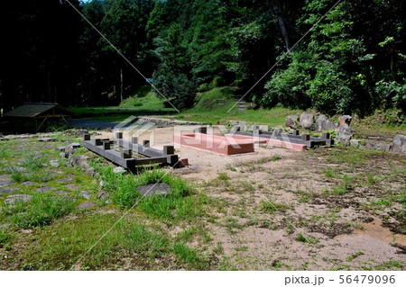 山口・萩・大板山たたら製鉄遺跡・製鉄炉の跡と、砂鉄洗い場の東屋(4)