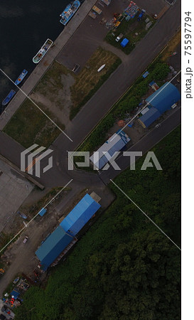 ドローンで上空から撮影した「漁港」(北海道斜里郡斜里町)