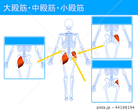 小殿筋、中殿筋、大殿筋、筋肉、イラスト
