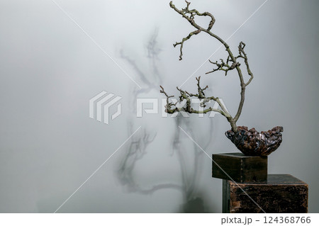 Minimalist Bonsai Art Against Misty Background