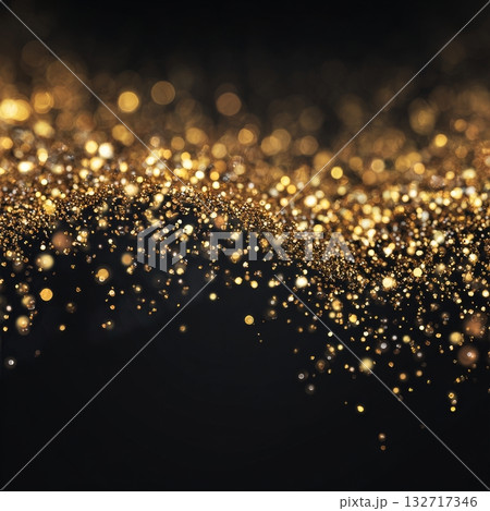 Sparkling Gold Particles Create a Dynamic Effect on a Dark Background in a Festive Setting