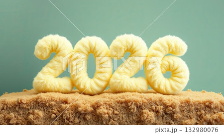 Metallic numbers representing the year 2026 on a vibrant yellow background, symbolizing new beginnings and celebrations for the upcoming year