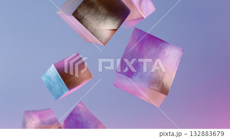 Elegant suspended forms with brushed metallic textures and cosmic color palette, ideal for posters, branding, and album cover art